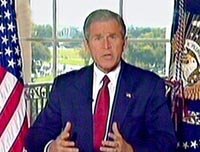 圖:布什發(fā)表講話宣布對阿富汗發(fā)動軍事進攻 2001年10月08日 10:45 ![]() 北京時間八日凌晨一時左右,美國總統(tǒng)布什在白宮官邸發(fā)表電視講話,宣布美國和英國已經(jīng)開始對阿富汗塔利班當局軍事目標和伊斯蘭極端主義份子拉登的卡達訓練營進行軍事打擊。 |