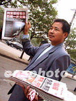 圖:“中國(guó)出線!美國(guó)開戰(zhàn)!”北京報(bào)紙好賣 2001年10月08日 10:56 ![]() “‘中國(guó)出線!美國(guó)開戰(zhàn)!’看報(bào)!”,北京報(bào)刊八日清晨刊登了中國(guó)足球出線世界杯勝?zèng)r,和美國(guó)反擊塔利班的戰(zhàn)事,街頭報(bào)販為此大聲叫賣。中新社記者 鄒憲 攝 |