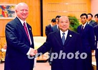 圖:中美商務(wù)高官會談 2001年10月18日 12:51 ![]() 中國對外經(jīng)濟(jì)貿(mào)易部石廣生部長十八日上午在上海國際會議中心與美國商務(wù)部副部長博德曼會談。中新社記者賈國榮攝 |