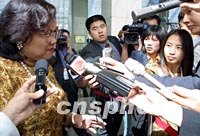 圖:馬來西亞貿(mào)易部長接受記者采訪 2001年10月18日 13:47 ![]() 參加APEC雙部長會議的馬來西亞貿(mào)易部長拉菲達·阿齊茲,十八日剛剛走出上海國際會議中心就被記者團團包圍。中新社圖 劉殊瑾 攝 |
