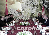 組圖:江澤民主席會見美國總統(tǒng)布什 2001年10月19日 13:40 ![]() 10月19日,國家主席江澤民在上海西郊賓館會見美國總統(tǒng)布什。中新社圖 ![]() 10月19日,中國國家主席江澤民在上海與美國總統(tǒng)布什舉行會談。中新社圖