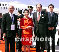 ![]() 菲律賓總統(tǒng)阿羅約(左)十九日中午到達上海浦東機場,她將參加二十一日的APEC領導人非正式會議。中新社圖 劉殊瑾 攝