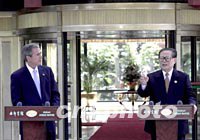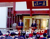 ![]() 十月十九日,美國總統(tǒng)布什在上海西郊賓館“睦如居”與中國國家主席江澤民會談,并共同在此舉行記者招待會。“睦”為和睦,“如”為如意。以此命名的江南風(fēng)格賓館,是外國元首下榻之地。中新社記者 賈國榮 攝