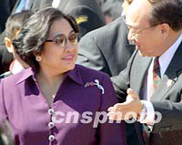 組圖:印尼總統(tǒng)梅加瓦蒂到滬 2001年10月19日 15:38 ![]() 印度尼西亞總統(tǒng)梅加瓦蒂(左)十九日中午到達(dá)上海浦東機(jī)場(chǎng),她將參加二十一日的APEC領(lǐng)導(dǎo)人非正式會(huì)議。中新社圖 劉殊瑾 攝 ![]() 印度尼西亞總統(tǒng)梅加瓦蒂(左)十九日中午到達(dá)上海浦東機(jī)場(chǎng),她將參加二十一日的APEC領(lǐng)導(dǎo)人非正式會(huì)議。中新社圖 劉殊瑾 攝
