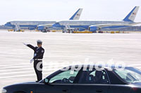 圖:浦東機(jī)場的“空軍一號(hào)” 2001年10月20日 11:03 ![]() 一名警察在上海浦東機(jī)場指揮車隊(duì),他的身后是美國“空軍一號(hào)”專機(jī)。中新社圖 劉殊瑾 攝 |