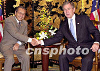 圖:美國總統(tǒng)會(huì)見馬來西亞總理 2001年10月20日 16:22 ![]() 10月20日,美國總統(tǒng)布什在上海會(huì)見馬來西亞總理馬哈蒂爾。中新社圖 |