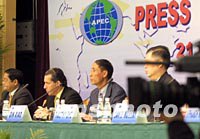 圖:秦曉總結(jié)ABAC“富有建設(shè)性” 2001年10月21日 13:21 ![]() ABAC工商咨詢理事會主席秦曉(左三)、副主席翟維爾.普瑞特(左二)、副主席泰莫斯(右一)、貿(mào)易投資組負(fù)責(zé)人馮國經(jīng)(左一),二十一日在上海國際會議中心舉行新聞發(fā)布會。秦曉稱此次會議“生動、活潑、自由”,理事們提出的建議“富有建設(shè)性”。中新社圖 劉殊瑾 攝 |