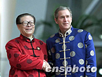 圖:江澤民在上?萍拣^迎接布什 2001年10月21日 17:25 ![]() 10月21日,中國(guó)國(guó)家主席江澤民在上?萍拣^迎接美國(guó)總統(tǒng)布什。亞太經(jīng)合組織第九次領(lǐng)導(dǎo)人非正式會(huì)議在這里舉行。中新社圖 |