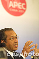 圖:馬哈蒂爾說反恐是無條件的 2001年10月21日 22:34 ![]() 參加APEC領(lǐng)導(dǎo)人非正式會(huì)議的馬來西亞總理馬哈蒂爾,二十一日在上海國際新聞中心的新聞發(fā)布會(huì)上說,反對(duì)國際恐怖主義是無條件的。中新社記者 劉殊瑾 攝 |