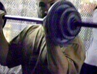 圖:戰(zhàn)火硝煙中健身的阿富汗人 2001年10月24日 10:14 ![]() 阿富汗首都喀布爾一名男子在美軍空襲的間隙,抽出時間健身。這個健身場所內(nèi),經(jīng)?梢钥吹角皝斫∩淼陌⒏缓谷。 |