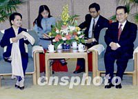 全國人大常委會委員長李鵬三十日在北京會見菲律賓總統(tǒng)阿羅約。中新社記者 滿會喬 攝