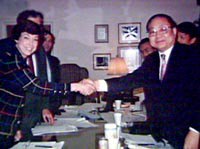 圖:入世歷程:《中美諒解備忘錄》的簽訂 2001年11月08日 14:43 ![]() 1992年10月10日中美兩國簽訂《中美諒解備忘錄》,中國入世談判取得了階段性成果。圖為中方團(tuán)長(右)佟志廣和美方團(tuán)長(左)卡倫·希爾斯在簽約儀式上。 |