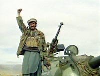圖:北方聯(lián)盟士兵歡慶勝利攻占塔盧坎 2001年11月12日 11:22 ![]() 阿富汗北方聯(lián)盟一名士兵十二日在坦克上歡慶勝利。阿富汗北方聯(lián)盟日前氣勢如虹,繼奪取北部重鎮(zhèn)馬扎里沙里夫和北部四個省份后,宣稱又攻占了前首都塔盧坎。 |
