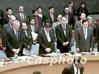 圖文:聯(lián)合國安理會發(fā)表聲明哀悼紐約墜機死難者 2001年11月13日 07:12 ![]() 美東時間十二日上午,聯(lián)合國安理會召開反恐外長會議。會議開始時,安理會全體起立默哀一分鐘,為當日上午紐約肯尼迪機場飛機墜毀事件中的遇難者表示深切哀悼。中新社記者 陳建 攝