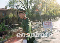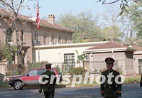 圖文:紐約空難后美國駐華大使館擴大警戒范圍 2001年11月13日 15:37 ![]() 北京警方13日在美國駐中國大使館前增加警力并擴大了警戒范圍,幾條通往使館門前的道路都設置了路障,禁止行人和車輛通行。美國美洲航空公司一架空中客車十二日在紐約墜毀,是否與恐怖主義襲擊有關仍有待進一步調查。中新社圖 武仲林 攝 ![]() 美國墜機事件后,中國軍方十三日對位于北京建國門外的美國使館區(qū)加強安保工作!熬乓灰弧焙笠恢睂嵭薪鋰赖拿朗桂^區(qū)內秩序安定。中新社圖 劉殊瑾 攝