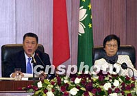 圖文:何厚鏵提出未來將配合經(jīng)濟(jì)調(diào)整開拓創(chuàng)新 2001年11月21日 07:30 ![]() 澳門特區(qū)行政長官何厚鏵(左),二十日代表特區(qū)政府在立法會(huì)大樓作二零零二年施政報(bào)告。中新社記者 宗金柱 攝