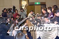 中國很快就會向社會公布入世議定書全部內容 2001年11月26日 17:20 ![]() 中國外經(jīng)貿部對外貿易經(jīng)濟合作部二十六日首次在中國加入WTO后于北京召開記者招待會。主持人高燕請中外記者提問。中新社記者 鄒憲 攝 ![]() 外經(jīng)貿部首次召開的入世新聞發(fā)布會二十六日在北京長富宮飯店舉行。盡管主辦者將發(fā)布會的場地擴大了一倍,取消了對中小媒體記者的限制,仍“招架不住”記者們對中國WTO官員的采訪熱情。中新社記者 史利 攝