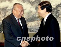 朱镕基會見董建華 探討香港內(nèi)地經(jīng)濟合作問題 2001年12月19日 17:53 ![]() 中國國務(wù)院總理朱镕基十九日下午在北京中南海紫光閣會見前來述職的香港特別行政區(qū)行政長官董建華。中新社記者 毛建軍 攝 ![]() 中國國務(wù)院總理朱镕基十九日下午在北京中南海紫光閣會見前來述職的香港特別行政區(qū)行政長官董建華。中新社記者 毛建軍 攝