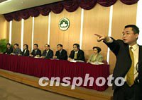 組圖:澳門(mén)賭牌競(jìng)投八日宣布批給結(jié)果 2002年02月09日 09:47 ![]() 澳門(mén)博彩競(jìng)投委員會(huì)八日宣布賭牌批給結(jié)果,圖為競(jìng)投委員會(huì)主席譚伯源等在新聞發(fā)布會(huì)上答記者問(wèn)。中新社傳真 宗金柱 攝 ![]() 受到世界矚目的澳門(mén)賭牌競(jìng)投于八日向公眾宣布批給結(jié)果,圖為競(jìng)投委員會(huì)主席譚伯源等在新聞發(fā)布會(huì)上答海內(nèi)外記者問(wèn)。中新社傳真 宗金柱 攝