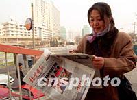圖:北京市民關注布什訪華 2002年02月20日 18:41 ![]() 一位從北京香格里拉飯店前匆匆而過的市民,正在專心地閱讀有關布什訪華的消息。設在該飯店內的白宮新聞發(fā)布廳和中方新聞中心已于今日啟動。中新社圖 張宇 攝