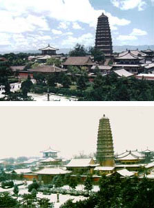 新聞背景知識(shí):阿育王寺和中國(guó)的法門(mén)寺 2002年02月20日 20:03 ![]() 不同季節(jié)的法門(mén)寺 中新網(wǎng)北京2月20日消息:釋迦牟尼佛在世時(shí),信眾就對(duì)佛身體上任何部分都視為圣物。佛涅槃后,周邊八個(gè)小國(guó)的國(guó)王曾率軍隊(duì)爭(zhēng)奪舍利,后被一個(gè)香姓婆羅門(mén)勸解,并主持將舍利分成八份,各自請(qǐng)回供奉。 釋迦牟尼佛涅槃后一百多年,古印度有個(gè)國(guó)王叫阿育王的崇信佛教,曾廣泛建立佛塔以供奉佛舍利。人們將這些塔統(tǒng)稱為阿育王塔。 據(jù)隋《歷代三寶記》、唐《破邪論》等佛典記載古印度阿育王曾在很大的地域范圍內(nèi)建筑佛舍利塔。據(jù)傳中國(guó)境內(nèi)有十九處,都稱中國(guó)江漢左右、關(guān)隴西東有阿育王塔。扶風(fēng)阿育王塔即為其一。法門(mén)寺初建于東漢年間,先有佛塔后建佛寺,所以最初便因阿育王塔而名阿育王寺,后唐高祖李淵賜名法門(mén)寺。 唐代法門(mén)寺寶塔為四級(jí)木塔,明代隆慶年間(公元1567—1572年)唐代木塔崩塌。明神宗萬(wàn)歷七年至三十七年(1579—1609)重建八角十三級(jí)磚塔一座,塔高四十七米。一九八一年八月二十四日在邊綿霪雨中明代磚塔塔身自上而下崩塌一半。 一九八六年十月,文物部門(mén)決定撥款重修寶塔。一九八七年四月在清理塔基時(shí),發(fā)現(xiàn)唐代地宮并出土佛指舍利和大量唐代稀世珍寶。唐朝幾代帝王都曾予以修葺。懿宗時(shí)又加以擴(kuò)建。地宮全長(zhǎng)21.12m,面積為31.84m2。整個(gè)地宮由踏步臺(tái)階、平臺(tái)、甬道、前室、中室、后室、秘龕七部分組成,以五道石門(mén)相隔。這個(gè)地宮曾得到唐王朝歷代皇帝的重視,給予多次修葺。