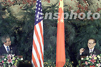 中新社北京二月二十一日十三時十五分電 本社記者譚宏偉現(xiàn)場報道:今天下午,中國國家主席江澤民和美國總統(tǒng)布什在結(jié)束大約一小時四十分鐘的會談后來到人民大會堂中央大廳共同會見記者。 江澤民說,在今天的會談中,我與布什總統(tǒng)回顧了中美關系三十年的歷程,深入討論了雙邊關系和當前國際形勢,達成了許多重要共識,取得了多方面的積極成果。 兩國元首將在預計三十分鐘的時間里,向早已等候在這里的三百多名中外記者介紹此次峰會的主要內(nèi)容并回答有關提問。記者會現(xiàn)正在進行當中。