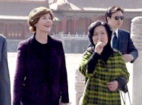 圖:美國總統(tǒng)夫人勞拉游覽故宮 2002年02月21日 19:29 ![]() 美國總統(tǒng)布什的夫人勞拉二十一日在中方人員陪同下興致勃勃地游覽故宮。