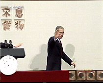 圖:布什總統(tǒng)結(jié)束回答學(xué)生提問 2002年02月22日 11:40 ![]()