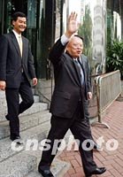![]() 二月二十八日董建華得知成為香港特區(qū)第二任行政長官候任人后步出圣約翰大廈,并面帶笑容向記者招手。中新社記者 任海霞 攝