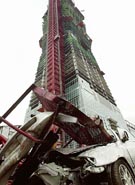 臺北"地標(biāo)"建筑墜物停工 傾斜民宅將連夜支撐 2002年03月31日 20:08 ![]() 臺北“金融大樓”吊臂墜落砸毀轎車并造成傷亡。 中新網(wǎng)香港3月31日消息:臺北訊,臺北“國際金融大樓”工地在今天的大地震中吊臂墜落,造成至少4人死亡多人受傷的慘劇。臺北當(dāng)局已經(jīng)要求業(yè)者停工。 預(yù)定興建101層樓的臺北“國際金融大樓”,曾被預(yù)計為臺北未來的一座“地標(biāo)”性的建筑,目前已經(jīng)興建到一半的高度。但在地震發(fā)生時,架設(shè)在頂部的兩具吊臂與支架發(fā)生松脫而墮落,其中一具甚至掉落在馬路上。 依照當(dāng)局規(guī)定,任何工地都必須依照規(guī)定設(shè)置防震性的防護(hù)措施。但“金融大樓”頂樓的吊臂在設(shè)置時是否合乎安全規(guī)定?吊臂支撐是否穩(wěn)固?將成為當(dāng)局調(diào)查的重點。 臺北市的“建筑管理處”今天已要求調(diào)查業(yè)者在施工時是否做好安全措施,并厘清肇事責(zé)任歸屬。 此外,臺北市承德路一座民房因為強(qiáng)震而部分倒塌,臺北市“副市長”歐晉德在7名受困民眾全部被送往醫(yī)院后表示,將連夜完成支撐建筑體的工作,避免這棟傾斜的樓房進(jìn)一步倒塌。