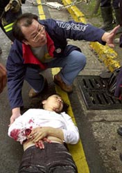 組圖:臺灣“三三一”地震臺北災難現(xiàn)場 2002年04月01日 09:02 臺北百層金融大樓起重機墜落現(xiàn)場。(法新) ![]() 警察查看從工地墜落的起重機。(法新) ![]() 一名男童在地震中受傷。(法新) ![]() 一駕車女子受傷,等待接受救治。(美聯(lián)) ![]() 救援人員搶救一名傷者。(法新)