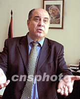 圖:巴勒斯坦駐華大使談巴以沖突 2002年04月03日 20:23 ![]() 巴勒斯坦駐華大使薩法里尼三日在北京的大使館向采訪他的媒體記者說:他前兩天在與阿拉法特主席通電話時,阿拉法特表示必須斗爭到底,決不屈服。在談到近日巴以沖突的形勢時說:目前,國際社會已經(jīng)開始發(fā)揮作用,承擔他們的責任。中新社圖 李剛 攝