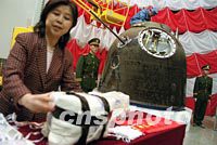 “神舟”三號(hào)返回艙開艙 太空“乘客”逐一亮相 2002年04月04日 16:20 ![]() “神州三號(hào)”飛船返回艙搭載物品開艙交接儀式,4日在中國空間技術(shù)研究院北京空間技術(shù)研制試驗(yàn)中心舉行,解放軍總裝備部,中科院,中國航天科技集團(tuán)公司等各界相關(guān)人士出席了交接儀式。中新社記者 王瑤 攝