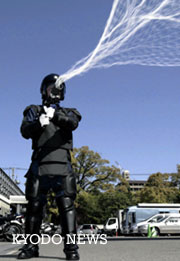 圖文:日本用"網(wǎng)槍"把足球流氓一"網(wǎng)"打盡 2002年04月05日 14:21 ![]() 大分縣警察總部警員身穿防護(hù)服,發(fā)射“網(wǎng)槍”(共同社圖) 本世界杯專稿版權(quán)歸中新網(wǎng)與TOM網(wǎng)站共同擁有。如需刊用,務(wù)經(jīng)雙方正式書面授權(quán)。 中新網(wǎng)北京4月5日消息:世界杯比賽主辦地之一的日本大分縣警察總部世界杯警備對策室4日公開了可以制服因興奮而到處胡鬧的足球流氓的“網(wǎng)槍”。 據(jù)共同社報道,在大約5米處發(fā)射“網(wǎng)槍”后,強(qiáng)化尼龍制成的網(wǎng)就向四方擴(kuò)展,展開面積大約5米,可以捉住2、3人。據(jù)說“就象落網(wǎng)的魚,自己絕對掙脫不出來!薄熬W(wǎng)槍”是國產(chǎn)的,每發(fā)射一次花費2萬日元。 “網(wǎng)槍”計劃被設(shè)置在舉行比賽的大分綜合體育場(大分市)以及附近車站的周圍。