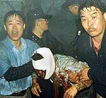 圖:滿身鮮血纏滿繃帶的乘客被送往醫(yī)院 2002年04月15日 17:21 ![]() ![]() 在韓國釜山附近金海機場撞山墜毀的中國航班上至少有54名生還者。圖為數(shù)名滿身鮮血和纏滿繃帶的乘客被救援人員背著送往醫(yī)院。直升機和救援車輛無法進入現(xiàn)場。