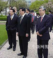 圖:胡錦濤參觀紐約聯(lián)合國(guó)總部 2002年04月30日 08:47 ![]() 美國(guó)東部時(shí)間四月二十九日下午,中國(guó)國(guó)家副主席胡錦濤(中)在聯(lián)合國(guó)副秘書長(zhǎng)陳健(左)、中國(guó)常駐聯(lián)合國(guó)大使王英凡(右)的陪同下參觀聯(lián)合國(guó)總部。中新社記者 陳建 攝