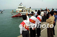湄洲媽祖金身首次直航金門巡安 創(chuàng)下多個第一 2002年05月09日 10:03 ![]() 湄洲祖廟媽祖金身于本月8日從湄洲島客運碼頭起駕,直航金門進行為期5天的巡安活動。這是50多年來媽祖金身首次以海上直航的方式出巡,也是湄洲島首次實現(xiàn)對金門的直航。圖為湄洲群眾依依不舍地向遠去的金門“太武號”船告別。鄭憲 攝