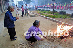 ![]() 應金門天后宮媽祖會的邀請,湄洲祖廟媽祖金身于本月8日從湄洲島起駕,直航金門進行為期5天的巡安活動。這是50多年來媽祖金身首次以海上直航的方式出巡。 圖為媽祖金身所經(jīng)過之路,家家戶戶燃起香火,老人們虔誠地目送媽祖。鄭憲 攝