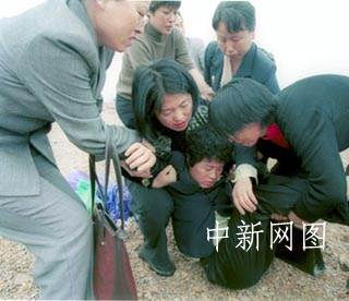 組圖:5月13日大連空難遇難者家屬舉行海祭 2002年05月13日 20:28 ![]() ![]() 圖為張豐儀的母親姜曉云悲痛難抑,暈倒在海邊。 ![]() 張廷家生前是東北電業(yè)管理局第二工程公司的工程師,圖為他的同事在大連海濱撒花祭奠 大連海事大學附屬小學五年級學生張豐儀和爸爸張廷家均在“五·七”空難中不幸罹難。五月十三日,張豐儀的母親姜曉云等親屬到飛機失事海域為他們舉行海祭。中新社圖 王麗南 攝