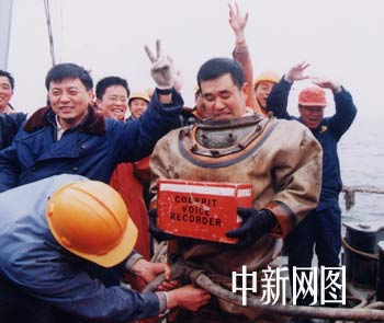 "五七"空難現(xiàn)場(chǎng)特寫:"我把黑匣子撈上來(lái)了!"(圖) 2002年05月14日 18:30 ![]() 潛水員馬有堅(jiān)捧著第一個(gè)黑匣子(話音記錄器) 宋立仕攝 ![]() 第一個(gè)黑匣子(話音記錄器)出水 宋立仕攝 ![]() 中外專家歡慶第一個(gè)黑匣子(話音記錄器)出水 宋立仕攝 中新網(wǎng)大連五月十四日消息:特寫:“我把黑匣子撈上來(lái)了!” 作者:張召學(xué) 齊彬 五月十四日下午三點(diǎn)零五分,四十歲的煙臺(tái)救撈局潛水員馬有堅(jiān),經(jīng)過(guò)在水下三十多分鐘的爬摸,終于把“五七”空難第一個(gè)“黑匣子”撈出了水面,讓在場(chǎng)的所有人員激動(dòng)萬(wàn)分。 此“黑匣子”為艙音記錄器,長(zhǎng)三十二厘米,寬十九點(diǎn)五公分,厚十二點(diǎn)二公分,重十二公斤左右。它是軍地雙方六十三名潛水員經(jīng)過(guò)八晝夜的緊張作業(yè)的結(jié)果。美國(guó)專家哈利斯·卡爾說(shuō):“我曾參加過(guò)世界上九次飛機(jī)‘黑匣子’的打撈工作,這是最難的一次,別的‘黑匣子’都能看到,這次‘黑匣子’即使在你的面前,如果你不用手去摸,你也拿不走”。 馬有堅(jiān)是今天下午兩點(diǎn)半下水的,在原來(lái)信標(biāo)定位的基礎(chǔ)上,他爬著用手向左一圈,向右一圈,經(jīng)過(guò)數(shù)百圈的摸索,終于探摸到一個(gè)硬物,由于出事海域淤泥很厚,海水非;鞚,看不清。馬有堅(jiān)就把這個(gè)硬物抱起來(lái),放在眼前,等混濁物稍微沉淀以后,他看到這個(gè)硬物呈橙紅色,其上有黑色的英文單詞。馬有堅(jiān)于是立即報(bào)告打撈船上的潛水員劉建天,經(jīng)證實(shí),他判斷,這應(yīng)該就是苦苦尋覓的“黑匣子”。 馬有堅(jiān)本想用信號(hào)繩把“黑匣子”綁上,拖上救撈船,但他怕綁不住,再滑落水中。于是,身負(fù)一百五十多斤潛水設(shè)備的馬有堅(jiān)親自用手把“黑匣子”抱出了水面。 馬有堅(jiān)上岸后,禁不住大聲激動(dòng)地說(shuō):“我終于把黑匣子撈上來(lái)了!”,所有在場(chǎng)的人熱烈鼓掌。 據(jù)介紹,當(dāng)時(shí)“黑匣子”所在位置飛機(jī)殘骸碎片很多,鋒利的鐵片把馬有堅(jiān)的雙手和雙腿都劃出了一道道小口子。馬有堅(jiān)說(shuō),“黑匣子”當(dāng)時(shí)就在這些殘骸里面,發(fā)現(xiàn)它真不容易。 馬有堅(jiān)今年四十歲,曾參加過(guò)1999年的11-24煙臺(tái)海難的打撈工作,有著豐富的水下打撈經(jīng)驗(yàn)。他說(shuō),這次打撈,水域面積這么大,而“黑匣子”又這么小,可謂是大海撈針。『茈y很難,我能把它撈上來(lái),真是太幸運(yùn)了。 這次打撈,是馬有堅(jiān)第三次下水,他前兩次曾撈上過(guò)一具尸體和部分飛機(jī)殘骸。