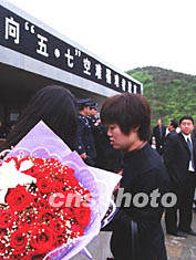 ![]() 十六日,人們沉痛地懷抱鮮花聚集大連殯儀館,向“5·7”空難中逝去的親人好友作最后告別。王麗南 攝