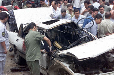 圖:黎巴嫩汽車炸彈爆炸 人陣書記之子被炸死 2002年05月21日 09:06 黎巴嫩首都貝魯特市中心今日中午發(fā)生一起汽車炸彈爆炸事件,解放巴勒斯坦人民陣線(總指揮部)書記艾哈邁德·賈布里勒的兒子被當(dāng)場炸死。圖為工作人員清理現(xiàn)場。中新網(wǎng)圖