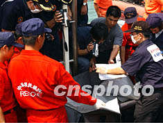 圖:全方位監(jiān)定失事華航客機乘客尸體 2002年05月26日 16:25 ![]() 5月26日中午,臺灣救援各部門對打撈出的遇難乘客尸體先進行攝影、攝相、DNA等項全面監(jiān)定后再交家屬認領。中新社記者 任晨鳴 攝