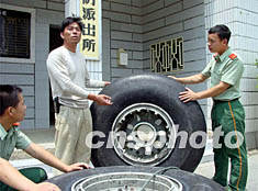 圖:福建漁民撈獲四只華航失事客機輪胎 2002年05月30日 19:09 ![]() 三十日下午二時許,“閩獅漁二三八五號”漁船打撈起一只華航失事客機輪胎,至此,福建石獅漁民已撈起失事客機的四只輪胎及多件飛機殘骸,F(xiàn)三只輪胎存放于石獅祥芝邊防派出所,隨時準(zhǔn)備移交臺灣方面。徐承彬 攝
