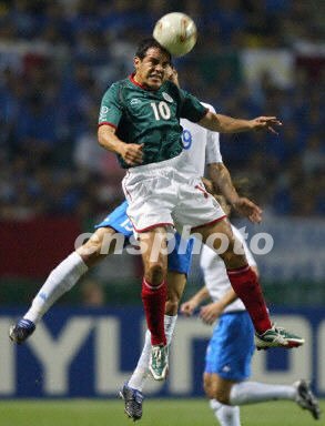 圖:墨西哥VS意大利 布蘭科與贊布羅塔爭頂 2002年06月13日 20:02 ![]() 韓日世界杯G組墨西哥隊與意大利隊的比賽在日本大分大眼睛體育場進(jìn)行,目前比賽正在進(jìn)行,場上比分為墨西哥1-0領(lǐng)先。圖為墨西哥隊10號布蘭科飛身爭奪頭球。