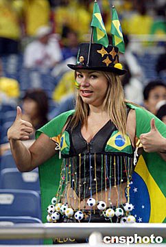圖:巴西女球迷 2002年06月27日 16:49 ![]() 世界杯足球賽半決賽巴西隊對土耳其隊的比賽二十六日晚在日本琦玉縣世界杯體育場舉行,巴西隊以一比零取勝而進入決賽。圖為現(xiàn)場助威的巴西球迷。作者:毛建軍