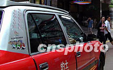 圖:香港的士裝飾慶;貧w祖國五周年標語 2002年06月28日 20:37 ![]() 香港的士同業(yè)在香港回歸祖國五周年之際,在車身裝飾慶祝標語,穿梭街頭。洪少葵 攝