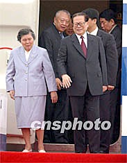 五年四次蒞臨香江 江澤民抵港參加回歸慶;顒 2002年06月30日 16:24 ![]() 中國國家主席江澤民和夫人王冶坪,6月30日下午乘專機抵達香港,出席香港回歸祖國五周年大會暨香港特區(qū)第二屆政府就職典禮活動,香港特區(qū)行政長官董建華登機迎接。中新社傳真 任晨鳴 攝