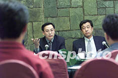 ![]() 大陸臺(tái)灣問(wèn)題專家辛旗(左)、李義虎等九日在北京就陳水扁“8.3”“臺(tái)獨(dú)”言論接受媒體聯(lián)合采訪。