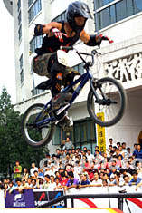 圖:中國極限精英賽街市決賽 2002年08月12日 16:30 ![]() 北京選手于秒在八月北京舉行的中國極限精英賽街市決賽中,高空雙手撒把體現(xiàn)了極限運(yùn)動的驚險刺激。作者:史利
